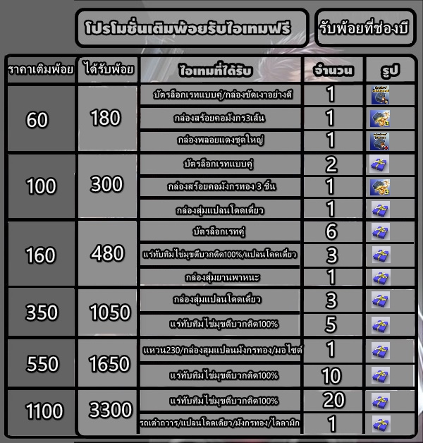 **พ้อยสะสมสามารถนำมาแลกของรางวันในโหมดพ้อยสะสมช็อปในเกม